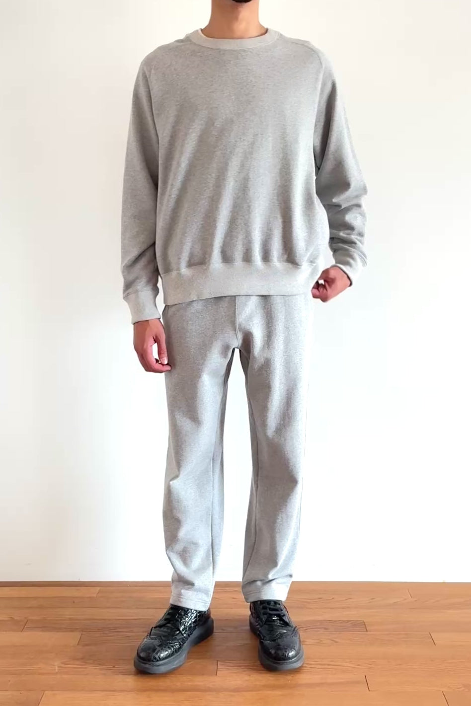 空気を含む事で吸湿性が高く速乾性に優れたUSAコットン裏毛を用いたセミラグランスリーブスウェット。しっかり目の詰まった固めなタッチ。着用と洗濯を繰り返す事でソフトな風合いに。ポケット付き。